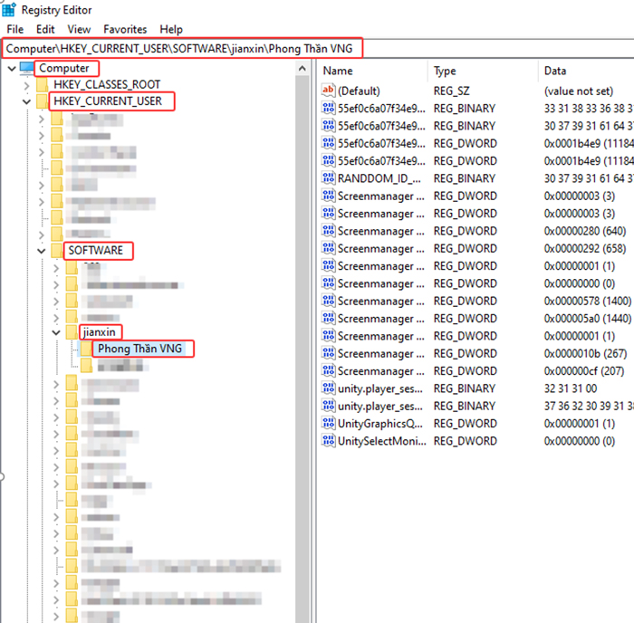 Computer\HKEY_CURRENT_USER\SOFTWARE\jianxin - Bước 3: Xóa toàn bộ nội dung tại thư mục này