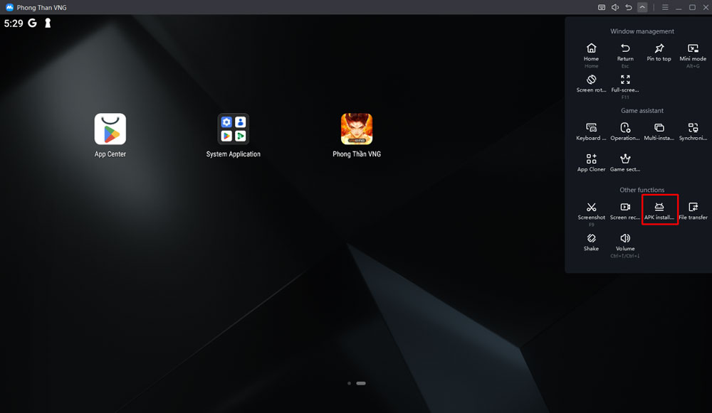 - Sau khi cài đặt file APK thành công, biểu tượng Phong Thần VNG sẽ xuất hiện ngoài giao diện chính,.