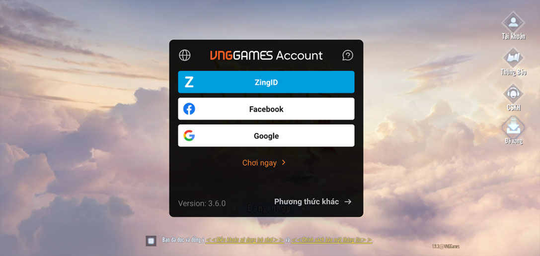 - Bước 3: Sau khi tải tài nguyên ban đầu hoàn tất, đạo hữu tiến hành đăng nhập để bắt đầu trải nghiệm.