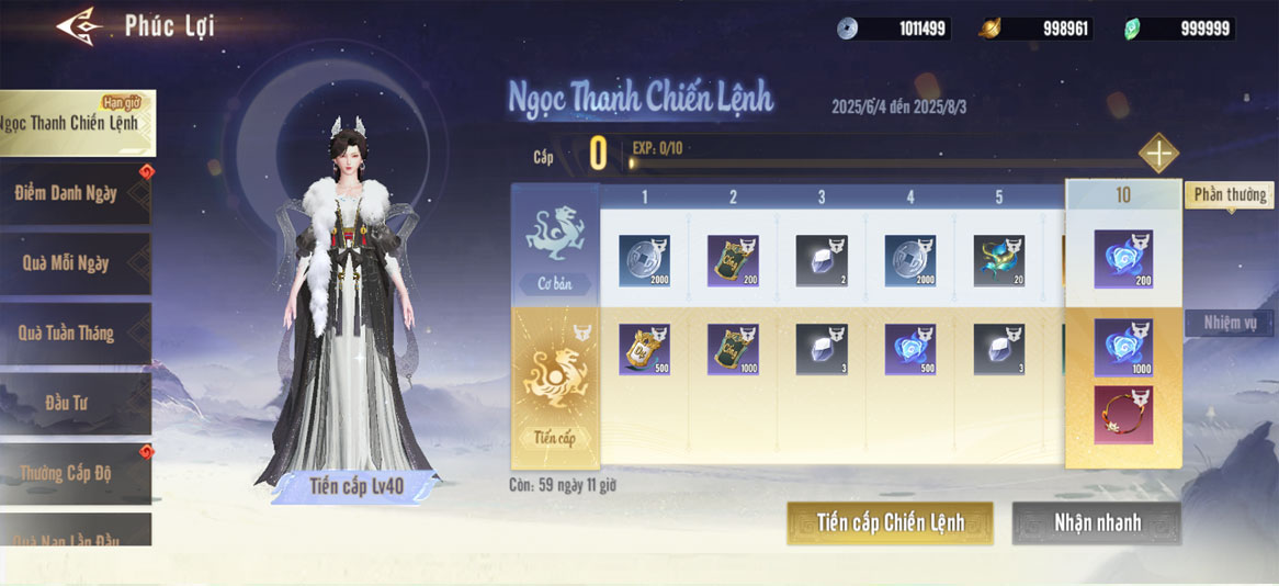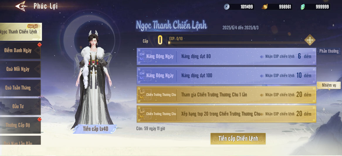 - Sau khi tạo nhân vật thành công, tại giao diện Phúc Lợi sẽ hiển thị mục [Ngọc Thanh Chiến Lệnh].
