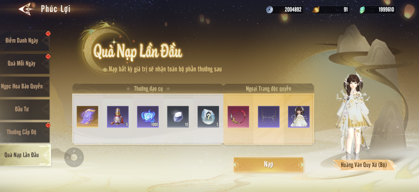 - Người chơi có thể nhận thưởng thông qua giao diện Phúc Lợi, mục Quà Nạp Lần Đầu.