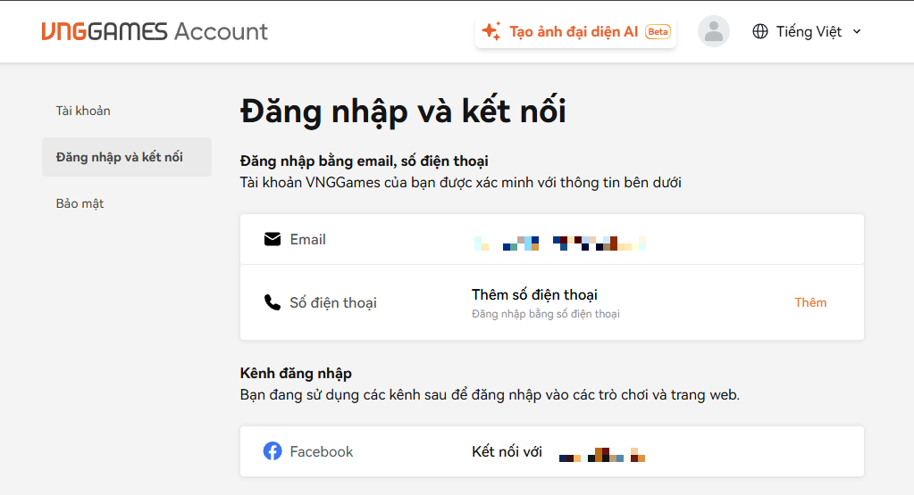 - Bước 4: Sau khi liên kết thành công, đạo hữu có thể sử dụng phương thức đăng nhập thông qua kênh Email, thay vì dùng tài khoản Facebook.