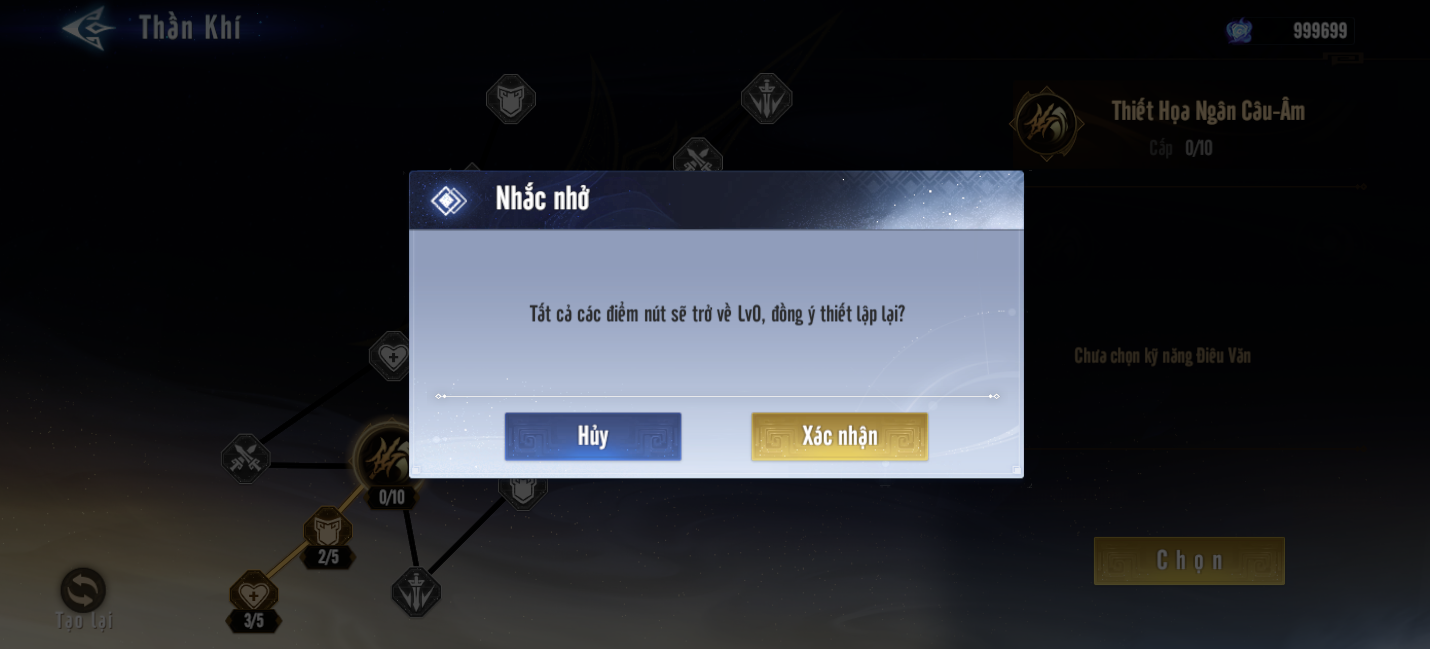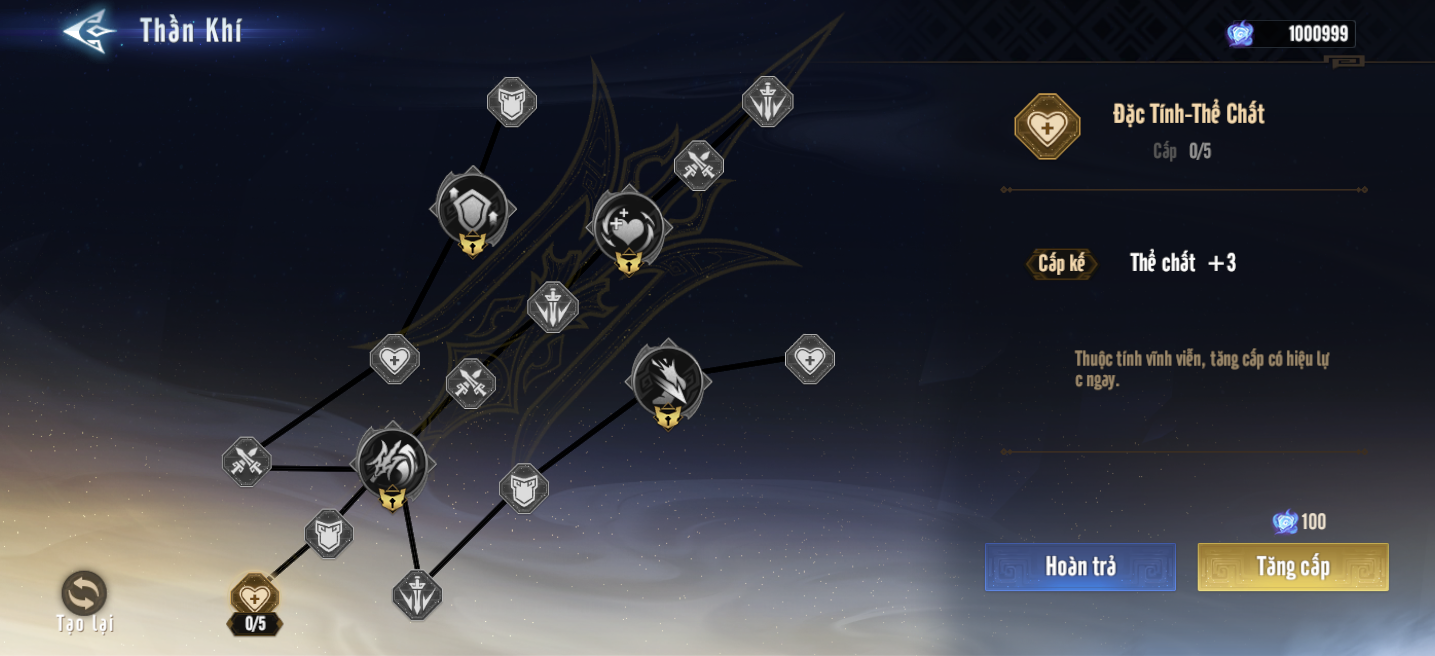 Người chơi cũng có thể tái lập miễn phí và thu hồi toàn bộ điểm Linh Uẩn đã phân bố bất kỳ lúc nào để có thể tái phân bố lại