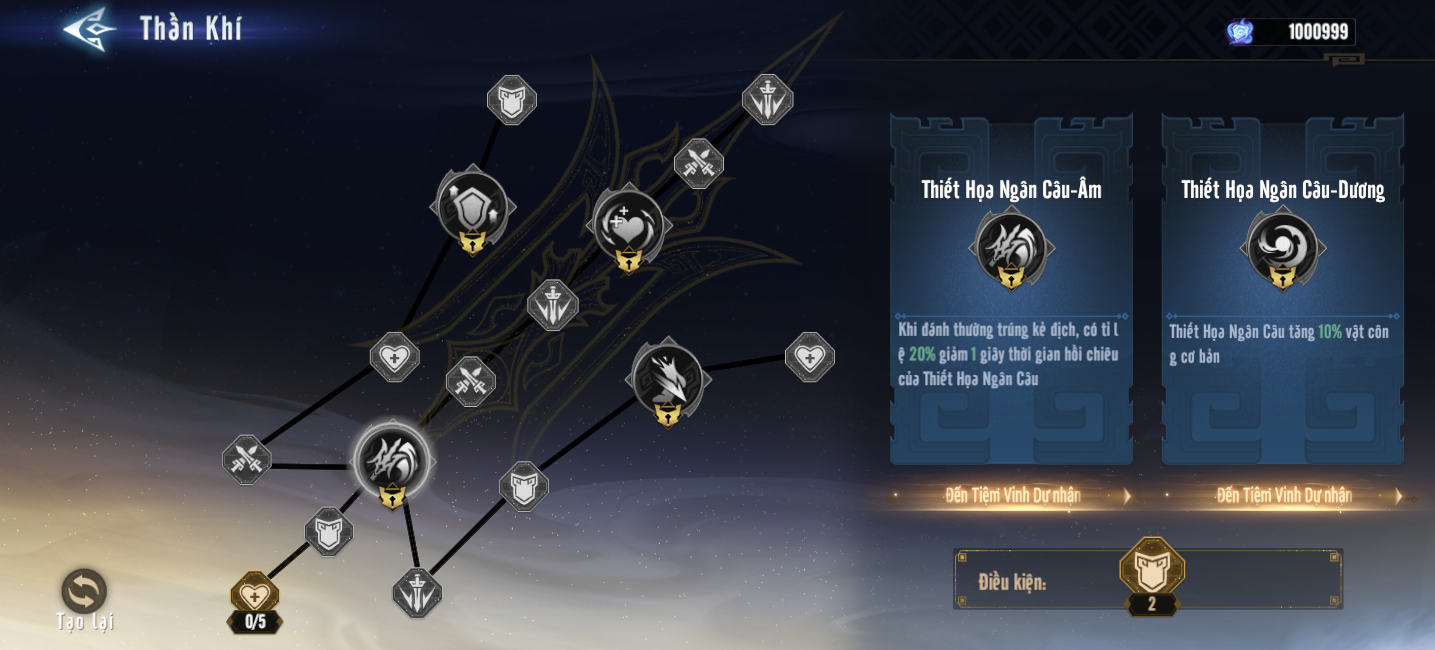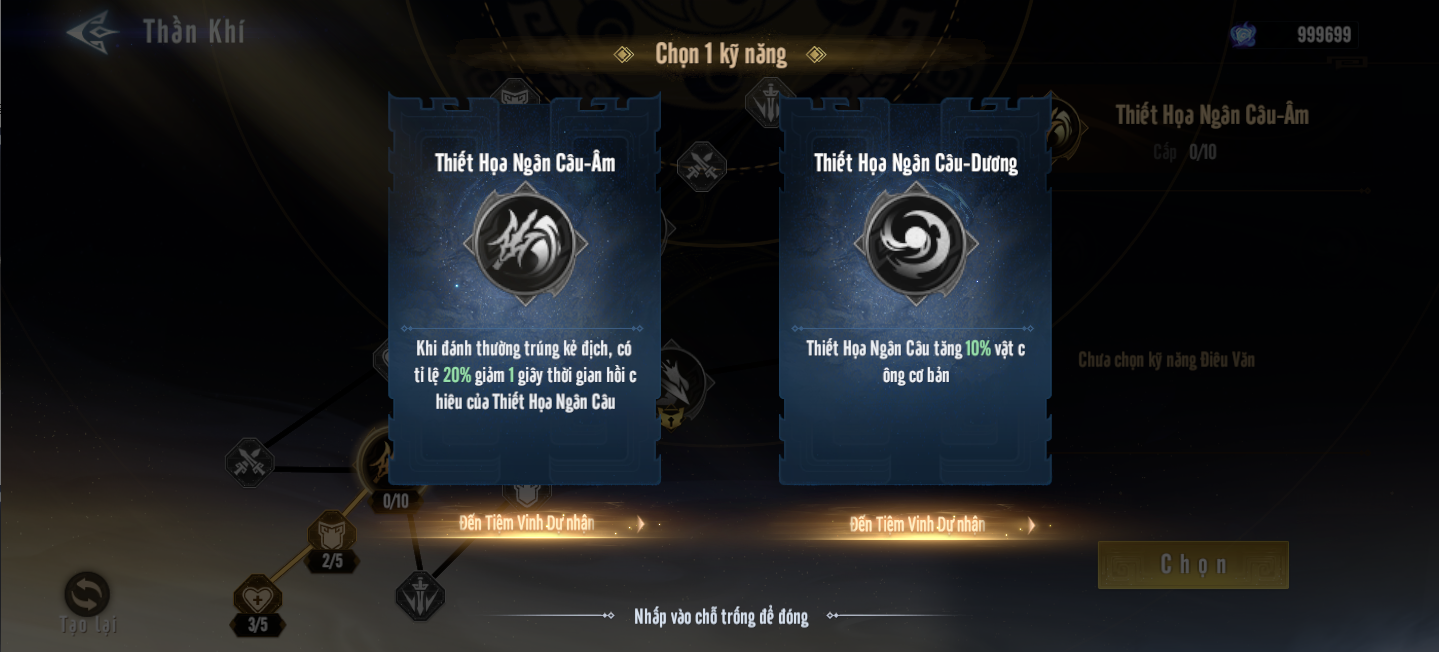 - Tính chất Thần Khí: Mở mỗi ô đặc chất hay điêu văn sẽ lập tức có hiệu lực ngay, cũng có thể tăng cấp sau đó nếu đủ Linh Uẩn