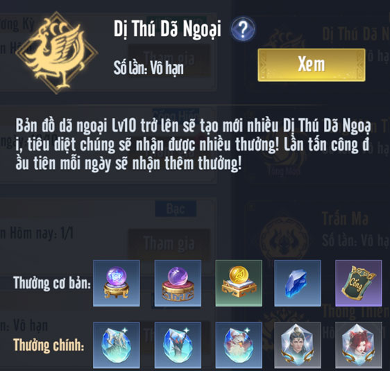 - Dị Thú Dã Ngoại: người chơi có cơ hội nhận được Thần Ấn Dương Tiền và Thần Ấn Đát Kỷ khi tham gia hoạt động.